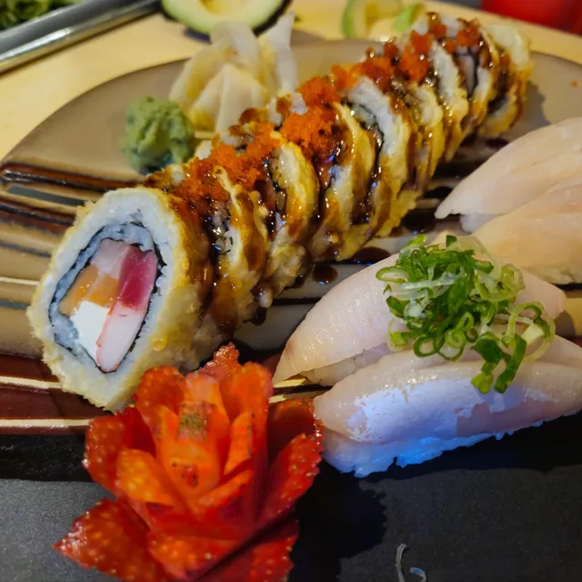 tuna, salmon, red snapper, crab, cream cheese, masago, deep-fried