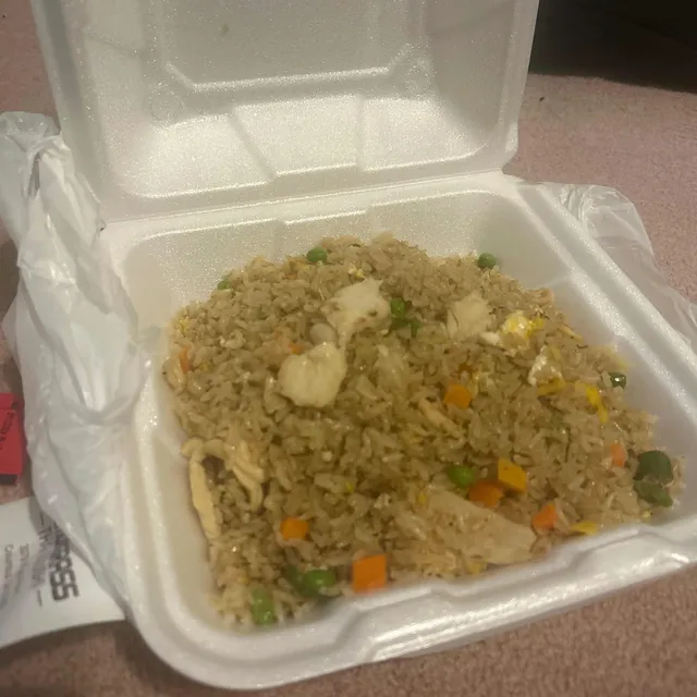 jasmine rice stir- fried with eggs, carrots, green peas and scallions.